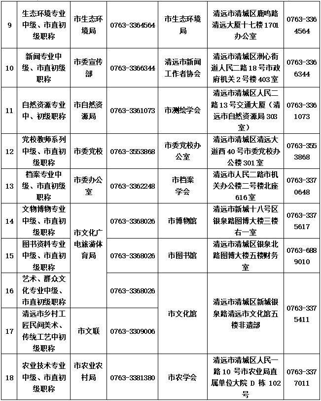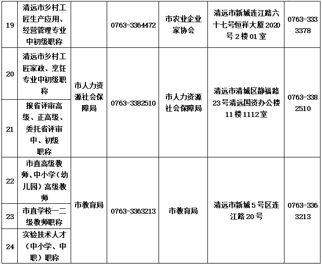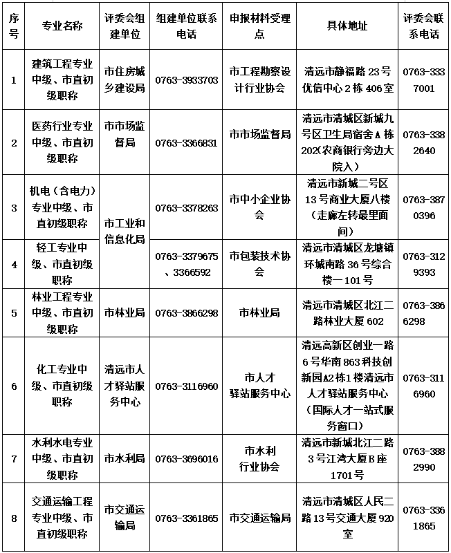 8.清遠市各縣(市、區(qū))人力資源社會保障局職稱受理點聯(lián)系方式
